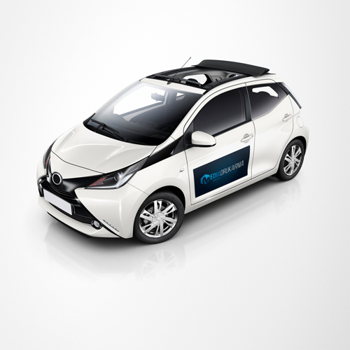 To nasz standardowy produkt. Naklejki są prostokątne i mają kwadratowe rogi. Nadruk składa się z białej folii monomerycznej, naklejonej na folię magnetyczną o grubości 6mm. Cena: od 360zł